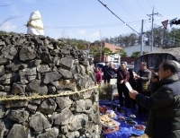 [굿타임] = 이강부 기자 = 정월대보름을 맞아 금산읍 백김이 마을 주민들이 마을의 안녕과 풍년, 가정의 복을 기원하는 탑제를 지내고 있다.