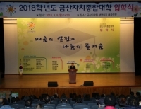 [굿타임] = 이강부 기자 = ‘배움의 열정과 나눔의 즐거움’이라는 슬로건 아래 금산군이 주최하고 금산교육사랑장학재단에서 운영하는 2018학년도 금산자치종합대학 입학식이 5일 금산다락원 대공연장에서 성황리에 개최됐다. 올해 금산자치종합대학 입학생은 취·창업 준비대학 등 5개 대학 31개 과정에 1188명이다.사사학교 심포애 남성중...
