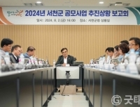 [굿타임] = 이강부 기자 = 서천군은 김기웅 군수를 비롯한 부군수, 부서장 등이 참석한 가운데 군청 상황실에서 지역 발전 동력 마련을 위한 2024년 공모사업 추진상황 보고회를 개최했다. 보고회는 부서별 공모사업 추진상황을 점검하고 사업별 주요 쟁점에 대한 해결방안 마련을 위해 개최됐다. 군에 따르면 지금까지 발굴한 공모사업은 총42...