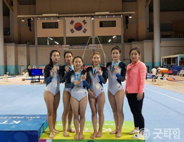 앞서 8월 초에 개최됐던 제43회 KBS배 전국체조대회에서 정이슬 선수가 평균대 종목에서 1위에 오르고 개인종합에서도 1위를 달성해 금메달 2개를 거머쥐었으며 이다솜 선수가 마루운동 종목에서 2위를 차지해 은메달을 목에 걸었다.