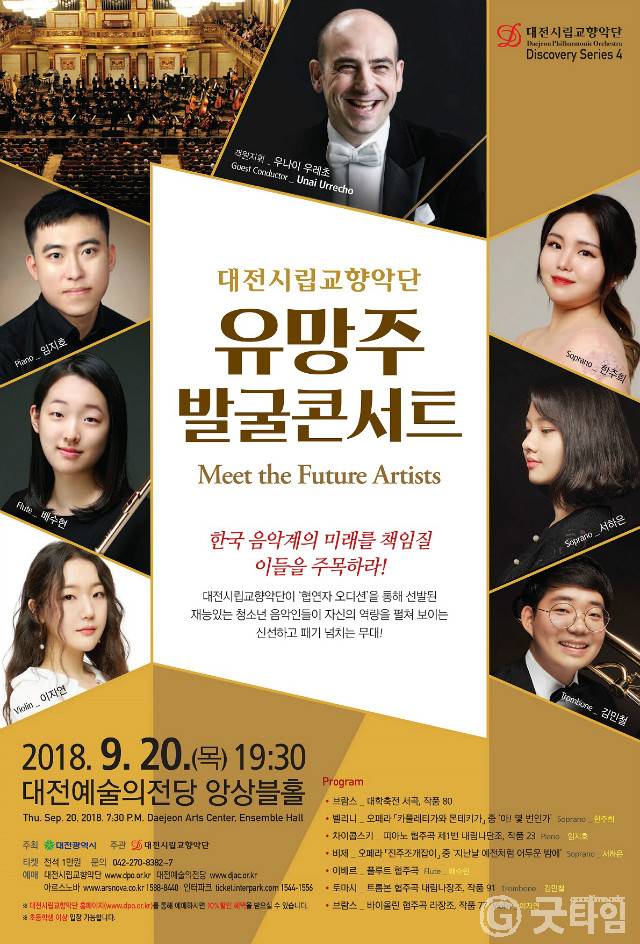 대전시향은 지난 6월 협연자 오디션을 통해 대전출신의 한국 클래식음악계를 이끌어갈 재능 있고 장래가 촉망되는 6명의 젊은 음악인을 선발했다.