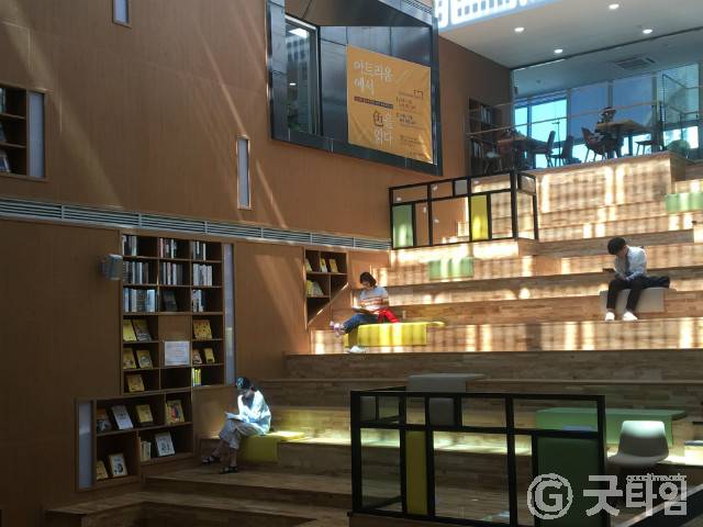 아트리움 서가에 전시되는 책은 자유롭게 이용 가능하고 어린이자료실, 영어자료실, 종합자료실에서 대출처리 후 빌려 갈 수도 있다.