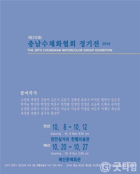 삼거리 갤러리는 10월 내 총3건의 전시를 선보이며 8일부터 12일까지 제29회 충남수채화협회 정기전 이 진행되며 충남수채화협회는 충남문화예술의 발전과 인재 발굴, 육성을 목적으로 29년의 역사 속에 매년 폭 넓은 수채화의 세계를 선사하고 있다.