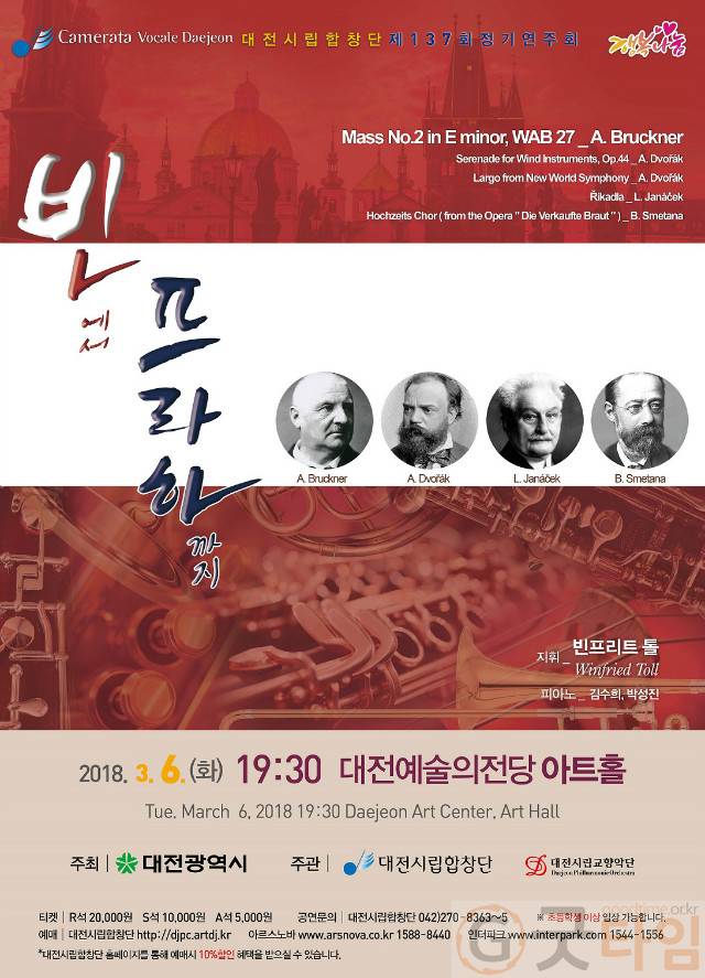 [굿타임] = 이강부 기자 = 대전시립합창단이 3월 6일 대전예술의전당 아트홀에서 제137회 정기연주회 빈에서 프라하까지 연주회를 갖는다.
