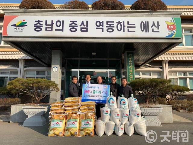[굿타임] = 이강부 기자 = 예산군 삽교읍새마을금고 직원과 조합원 일동은 삽교읍행정복지센터를 방문해 쌀(20kg) 50포를 관내 어려운 이웃을 위해 써달라며 기탁했다.