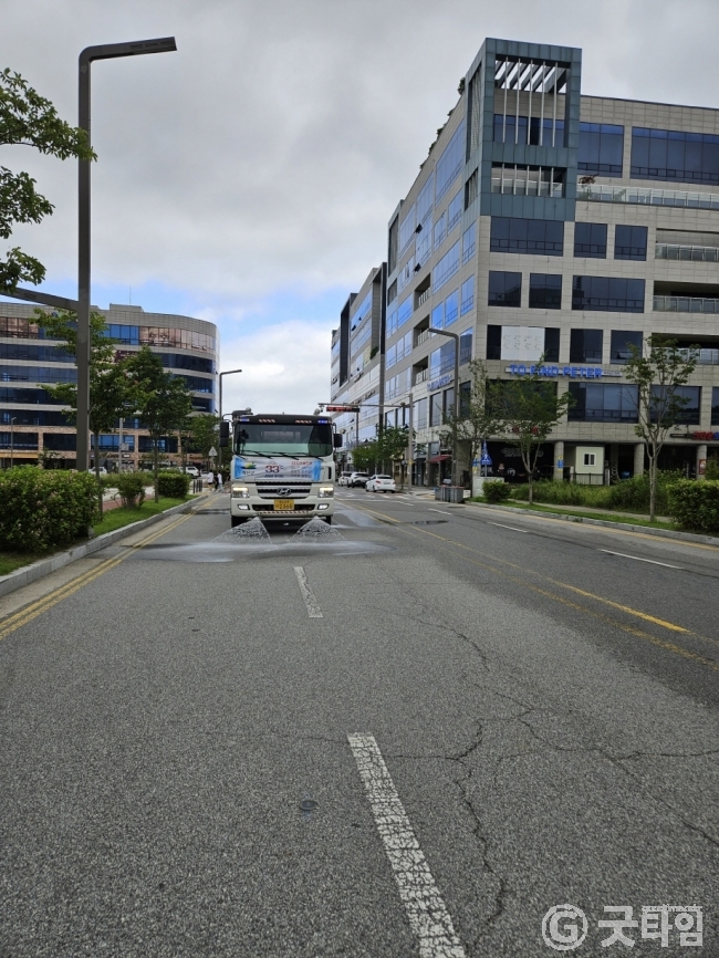 [굿타임] = 이강부 기자 = 예산군은 폭염으로 인해 어려움을 겪는 군민에게 쾌적한 도로 환경을 제공코자 관내 시가지 주요 도로에 대해 살수 작업을 실시한다.
