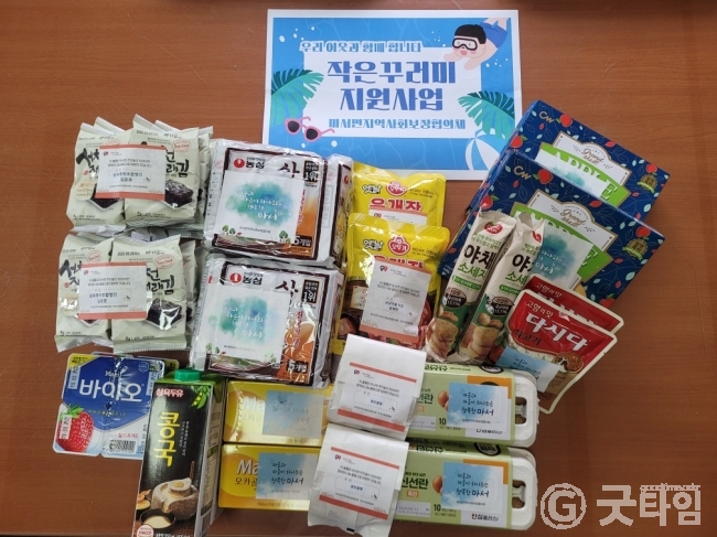 이번 작은 꾸러미에는 남상마을 윤배희 이장이 즉석국, 원단팥빵에서 단팥빵, 삼육영어조합법인에서 조미김 등을 후원받아 구성했다.