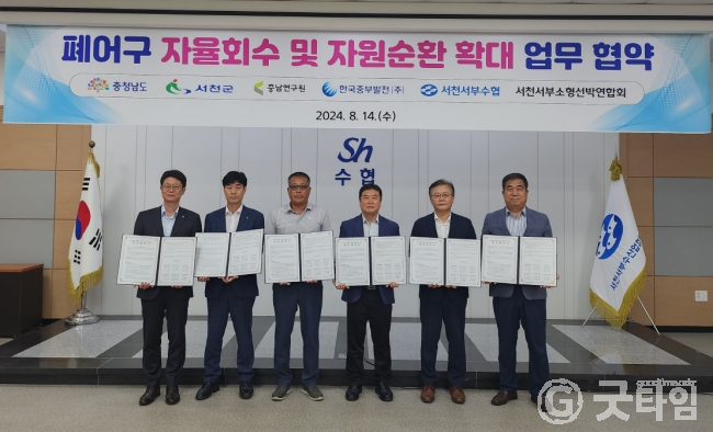[굿타임] = 이강부 기자 = 서천군은 서천서부수협에서 충남도, 충남연구원, 한국중부발전(주), 서천서부수협, 서천서부소형선박연합회 등 6개 기관 관계자가 참석한 가운데 폐어구 자율회수와 자원순환 업무 협약을 체결했다.