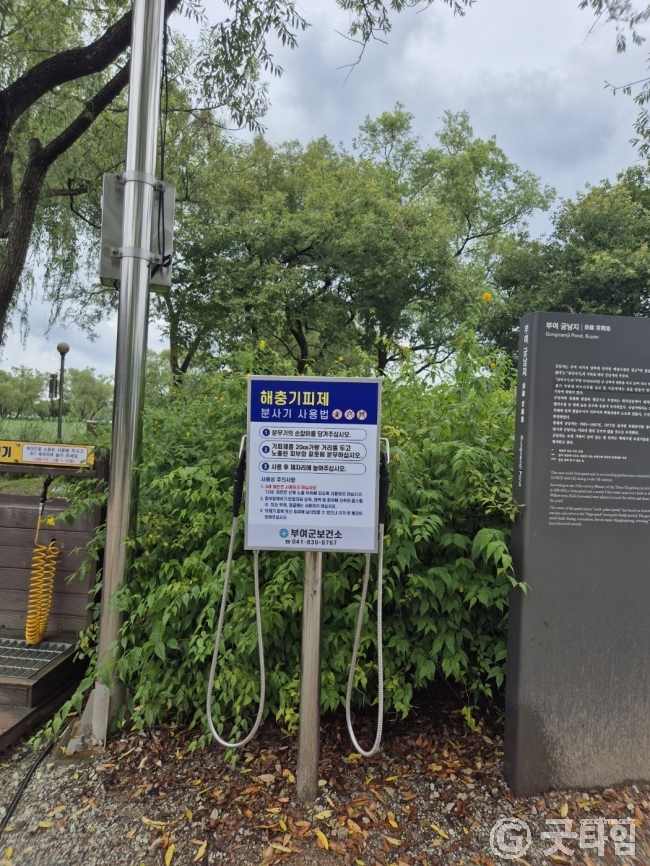 김옥선 부여군보건소장은 "기피제분사기의 지속적인 점검과 관리를 통해 군민들과 관광객들이 불편함이 없도록 방역 활동을 펼칠 예정이며 이용객들의 이용 빈도수와 호응도가 높으면 추가로 확대 설치할 계획”이라고 말했다.