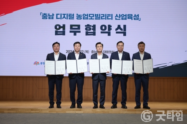 [굿타임] = 이강부 기자 = 예산군은 충남도청에서 충남 디지털 농업 모빌리티 산업육성을 위한 업무협약을 체결했다.