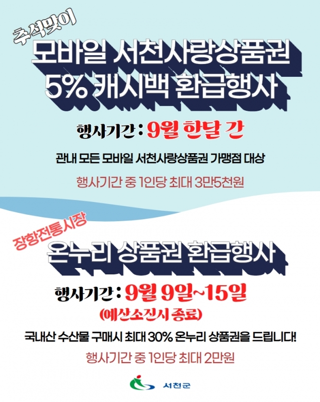 “추석 맞이 풍성한 혜택, 서천사랑상품권으로 알뜰한 명절 준비하세요”