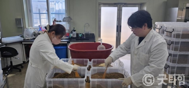 부여군은 천적 사육을 위해 2023년 농업진흥청 공모사업비 6억원을 확보해 농업기술센터내에 천적곤충실을 구축했으며 이후 2024년 5월부터 천적 뿌리이리응애 사육을 시작해 현재까지 90농가 26헥타르(ha)에 공급했다.