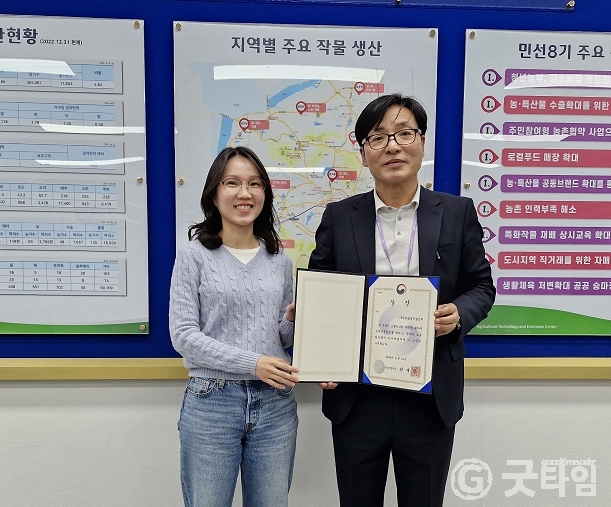 [굿타임] = 이강부 기자 = 아산시농업기술센터가 농촌진흥청에서 주최한 2024년 농촌진흥기관 소셜미디어 운영 평가에서 우수상을 받으며 지역 농업 소통과 홍보 역량을 다시 한번 인정받았다.