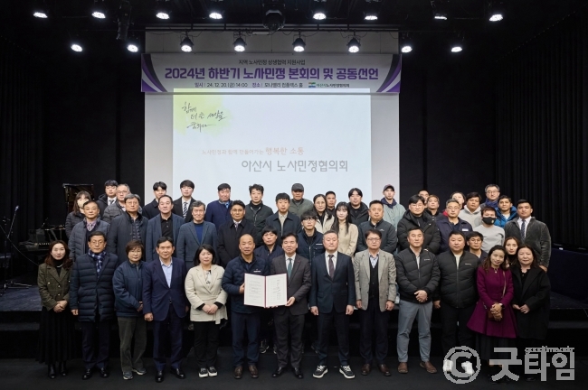 [굿타임] = 이강부 기자 = 아산시 노사민정협의회는 아산 모나밸리에서 조일교 아산시장 권한대행, 이창수 한국노총 아산지역지부 의장 등 70여명이 참석한 가운데 2024년 아산시 노사민정협의회 본회의와 성과보고회를 개최했다.