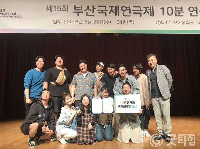 [굿타임] = 이강부 기자 = 호서대학교 연극전공 소속 4학년 재학생들로 이루어진 동물농장 팀이 최근 열린 제15회 부산국제연극제 10분 연극제에서 전공대학부 동상과 상금을 수상했다.