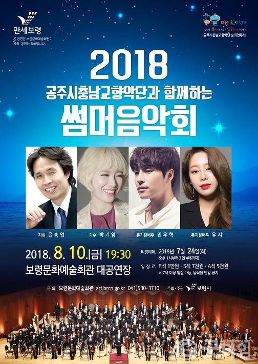 이번 공연은 가창력과 뛰어난 노래 실력을 가진 가수 박기영, 뮤지컬배우 민우혁과 유지가 충남교향악단과 함께 협연으로 진행한다.
