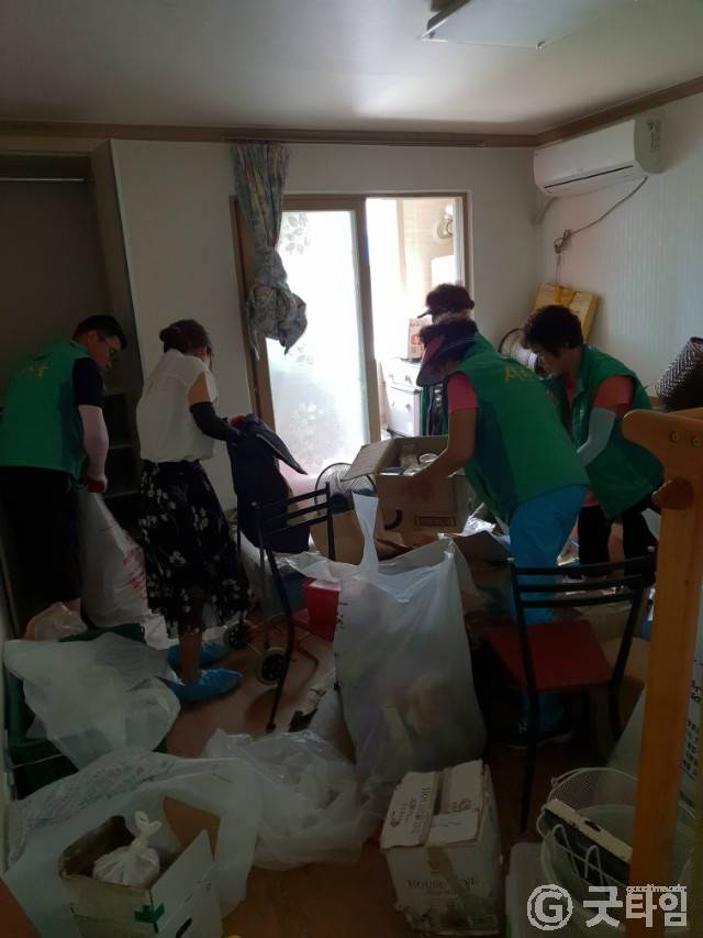 [굿타임] = 이강부 기자 = 아산시 온양5동 행복키움추진단은 25일 찾아가는 보건 복지사업의 일환으로 온양5동 남여새마을지도자회와 연계해 정신질환을 앓고 있는 A씨 세대의 주거환경개선을 위해 힘을 모았다.