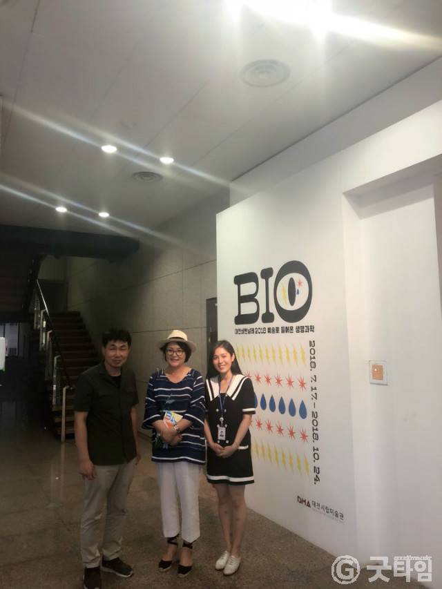 [굿타임] = 이강부 기자 = 영부인 김정숙 여사가 지난 2일 대전시립미술관의 대전비엔날레 2018 바이오 전시회를 관람했다.