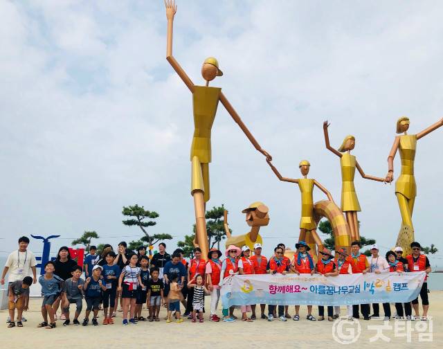 [굿타임] = 이강부 기자 = 세종시 아름동 지역사회보장협의체는 사회복지공동모금회 민관협력지원 사업으로 10일 대천보령해수욕장에서 아름꿈나무교실 1박2일 캠프를 진행했다.