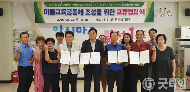 [굿타임] = 이강부 기자 = 천안시 태조산청소년수련관은 원성1동과 대한노인회원성동분회, 원성1동 주민자치회와 마을교육공동체 조성을 위한 업무협약을 체결했다.