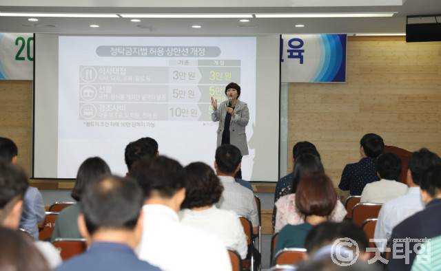 이날 교육은 어울림교육개발원 배정애 원장을 초청해 조직의 승패는 청렴이다라는 주제로 공익신고제도, 공무원행동강령과 청탁금지법 등과 관련한 사례 위주로 교육함으로 참석자들의 이해를 높이고 부정부패에 대한 경각심을 고취시켰다 .