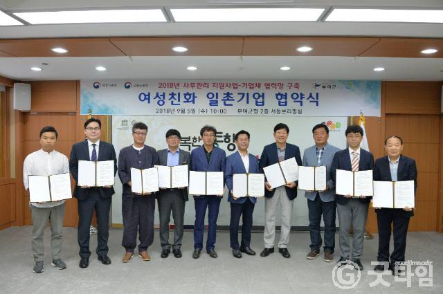 이번 협약식에는 강변사랑채 노인요양공동생활가정, 건양대학교 부여병원, 기와마을 영농조합법인, 기쁨노인복지센터, 루디꼬, 부여땅나무공작소, ㈜대명철강, ㈜호텔롯데 롯데리조트부여, ㈜청정테크 등 9개 업체가 참여했다.