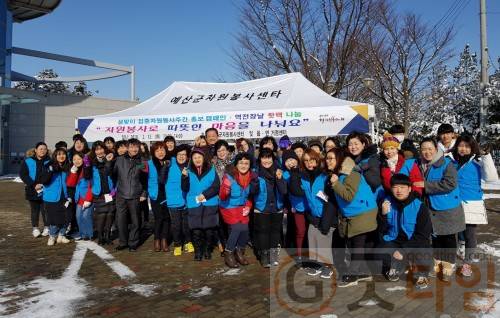 자원봉사로 따뜻함을 나누는 핫팩나눔은 예산군자원봉사센터와 12개 읍면 거점센터 상담가와 자원봉사자 60여명이 참여해 핫팩 1000개를 1시간여 동안 전달했다.