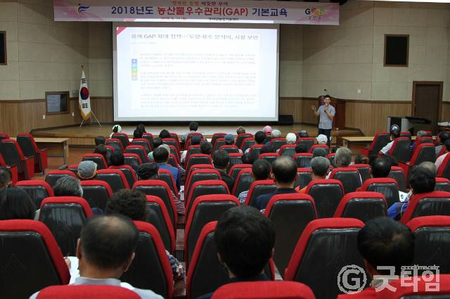 교육은 농산물 우수관리 기준에 따라 생산 관리하고자 하는 단체와 농가 150여 가구가 참석해 농업기술센터 대강당에서 농산물우수관리 제도의 인증절차, 농약허용물질목록 관리제도(Positive List System, PLS) 등 안전농산물 생산에 필요한 내용을 교육받았다.