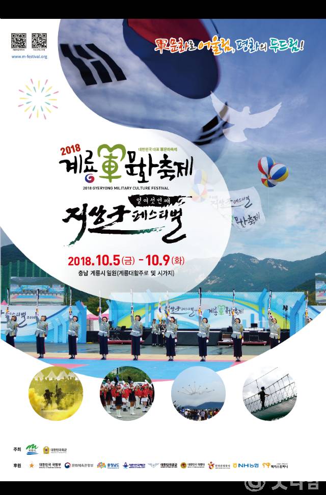 2018계룡군문화축제는 오는 10월 5일부터 9일까지 계룡시와 계룡대 일원에서 지상군폐스티벌과 동시에 개최되며 군악 의장공연, 블랙이글 에어쇼, 개막 축하공연, 거리퍼레이드, 시민예술공연, 프린지 페스티벌 등 37여 종목의 다채로운 행사로 꾸며질 예정이다.