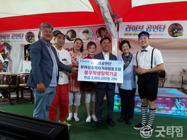 제64회 백제문화제 기간동안 부여원조먹자거리협동조합이 라이브공연단을 초대해 저소득 청소년 장학기금 마련을 위한 노래자랑을 개최 행사기간동안 발생한 수익금 전부를 청소년 장학금으로 기탁했다.