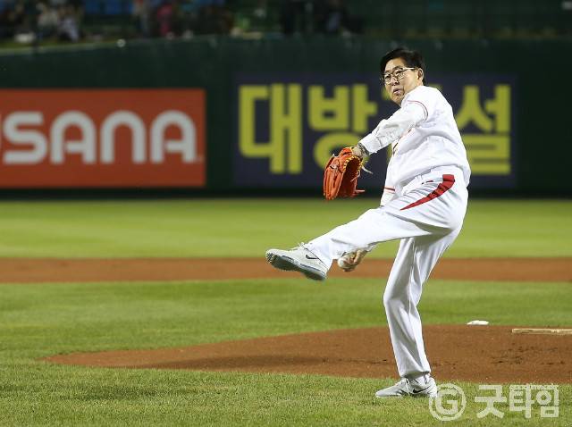 양 지사의 이날 시구는 한화이글스가 마련한 충남도의 날 행사의 일환으로 진행됐다.