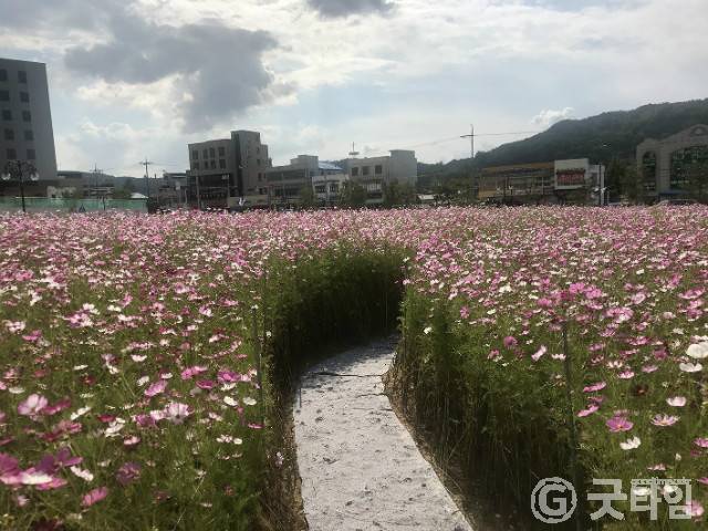 [굿타임] = 이강부 기자 = 예산군 신청사 일원에 알록달록 만개한 코스모스들이 가을의 정취를 더해주고 있다.