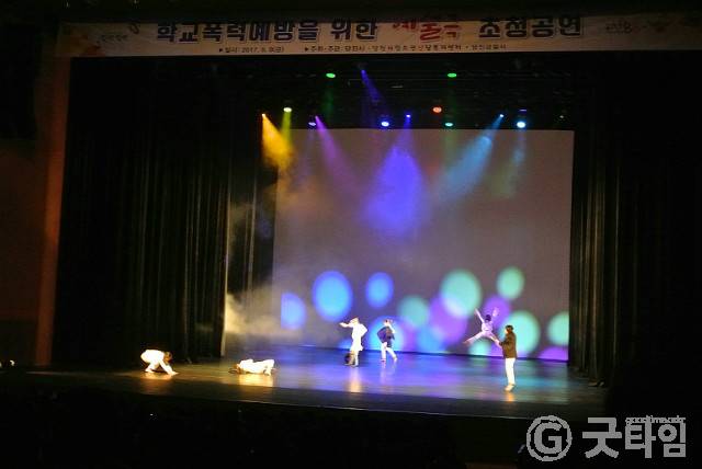 한편 당진시 주관 부서인 평생교육새마을과 홍승선과장은 “이번 학교폭력예방 연극 관람을 통해 학교폭력과 자살문제가 중요한 해결 과제로 대두되는 학교현실을 반영해 이런 문제들을 문화예술로 치유하는 인성교육에서 해법을 찾고자 하며 더불어 교육적인 주제를 담은 예술작품을 통해 꿈과 끼를 키우는 교육을 지원코자 하는 목적이 있다”고 말했다.