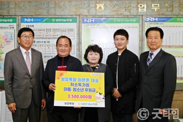 특히 전달된 후원금은 당진낙농축협의 이사직과 당진낙농연구회 회장직을 함께 겸하고 있는 이 대표가 지난 9월 충남 축산인 들의 화합과 도약의 장인 2018 충남 좋은 가축 선발대회에 참석해 받은 경품(송아지)에 사비를 더해 마련됐다.