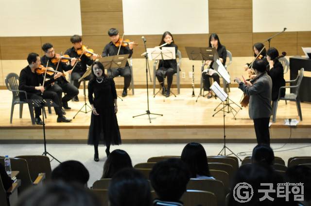 이날 레온데 앙상블은 브람스의 헝가리 무곡 5번을 시작으로 이비노비치의 다뉴브 강의 잔물결, 아루투니안의 트럼팻 협주곡 등을 연주했으며 20대 청년 테너 유용진 씨가 뱃노래를 부르며 또래 학생들과 공감을 이뤘다.