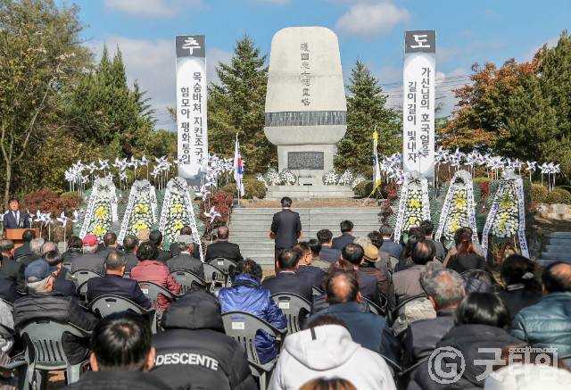 [굿타임] = 이강부 기자 = 당진시에 위치한 나라사랑공원 호국지사 위령탑에서 한국자유총연맹 당진시지회 주관으로 자유민주주의 수호에 앞장서다 희생된 호국영령을 추모키 위한 제38회 자유수호 희생자 합동위령제가 거행됐다.