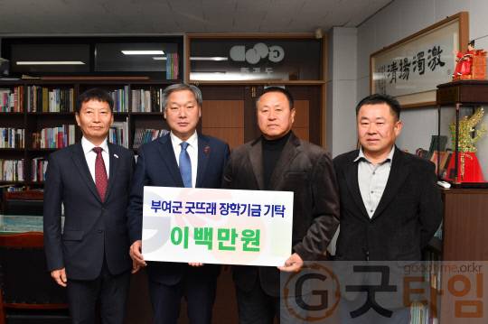 [굿타임] = 이강부 기자 = 초촌면 이장단은 21일 부여군청을 방문해 지역의 인재육성을 위한 장학기금 200만원을 기탁했다.