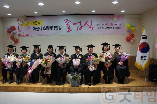 아산시 어울림통기타 학습동아리의 식전 공연으로 시작된 이날 졸업식은 학력인정서, 표창장, 졸업장 수여, 교육활동 영상 상영 등으로 진행됐다.