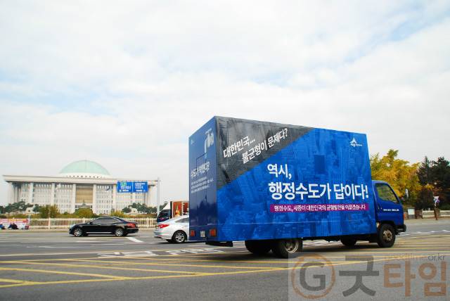 행정수도 완성을 위한 전국민적 공감대 조성을 견인하기 위해 야심차게 출발한 이동식 홍보차량은 지난해 11월 6일 서울 여의도 일대를 돌며 순회 홍보를 시작한 후 부산과 광주, 대전, 수원을 비롯한 경기도 일대 등 전국 주요도시를 순회하며 게릴라 홍보활동을 펼쳤다.