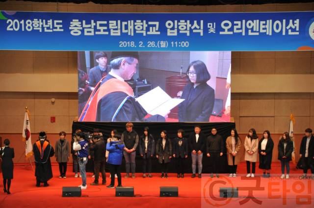 이날 입학식은 허재영 총장의 입학허가 선언에 이어 신입생 선서, 장학증서 수여, 신입생 환영의 메시지를 담은 동영상 시청 등의 순으로 진행됐다.