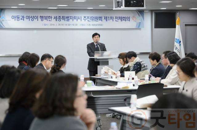 [굿타임] = 이강부 기자 = 세종특별자치시는 2월 28일 청사 내 세종실에서 정책전문가, 현장전문가, 세종시의회 의원, 시민 등 추진위원이 참석한 가운데 아동과 여성이 행복한 세종특별자치시 추진위원회 전체회의를 가졌다.