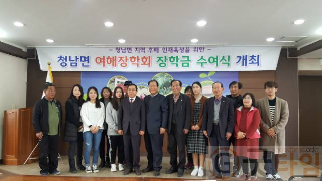 [굿타임] = 이강부 기자 = 청양군 청남면 여해장학회는 27일 청남면사무소 2층 회의실에서 장학금 500만원을 5명의 학생에게 전달했다.
