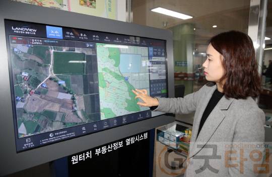 부동산정보 열람시스템은 군민들이 창구를 방문하지 않고도 지적공부와 개별공시지가 등 총 15종에 달하는 부동산 관련 정보를 편리하게 접할 수 있는 시스템으로 지난 2011년부터 도입돼 현재 군청과 8개 읍면사무소와 공용버스터미널 등에 총10대가 설치돼 있다.