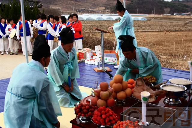 특히 천지신명에게 정성을 다하기 위해 구룡천의 발원지인 월명산 금지사 샘터에서 채수한 물을 제례에 사용하고 동이에 이고 행진을 하는 등 색다른 이벤트를 진행했으며 제례에 이어 구룡농협 마당에서 전통 민속놀이인 윷놀이 대회를 성대히 치렀다.
