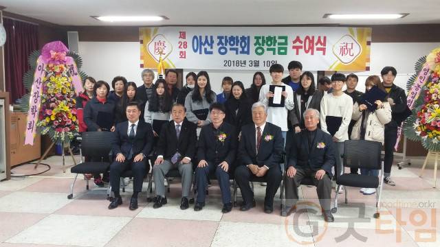[굿타임] = 이강부기자 = 아산장학회는 10일 향토인재 육성 발굴을 위해 아산장학회 위원과 학부모님들이 참석한 가운데 고등학생과 대학생을 대상으로 장학금을 전달했다.