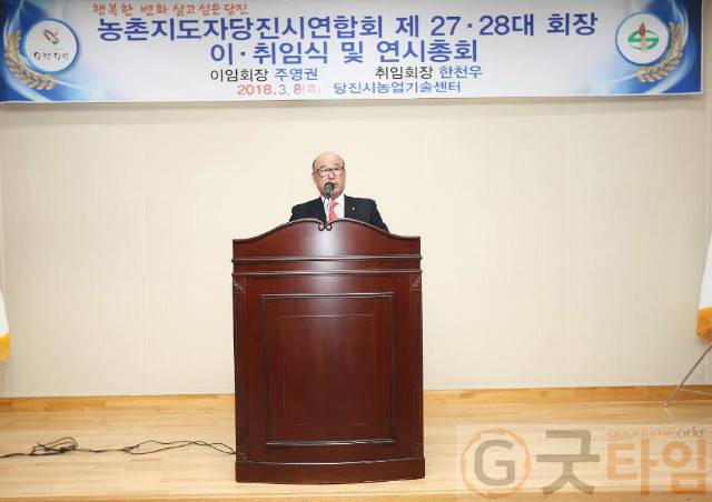 [굿타임] = 이강부기자 = 주영권 전임회장에 이어 제28대 농촌지도자당진시연합회장으로 한천우 씨가 취임했다.