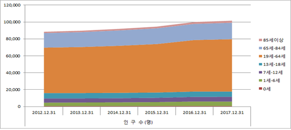 충남 전체 평균연령이 2012년 40.3세에서 2017년 42.5세로 2.2세 더 늘어난 것과 비교해 볼 때 홍성군은 고령화가 아주 느리게 진행되고 있다는 것을 보여주는 결과로 도청 이전과 내포신도시 조성으로 젊은층의 유입이 많아졌기 때문으로 분석된다.