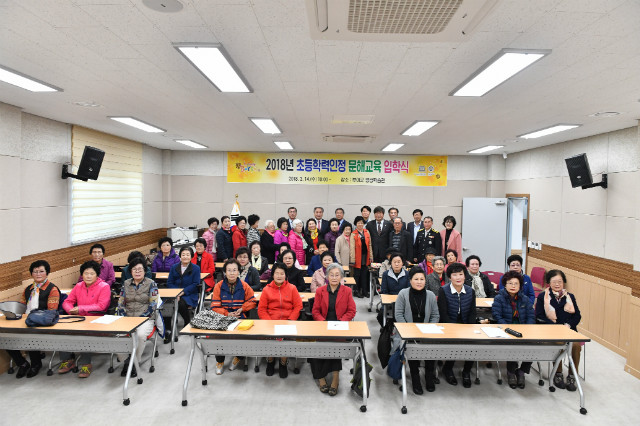 [굿타임] = 이강부 기자 = 부여군은 비문해 어르신들의 기초생활 능력 향상을 위해 2018년 초등학력인정 문해교육 프로그램을 마련하고 14일 부여군 평생학습관에서 입학식을 개최했다.