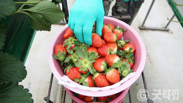 논산시 가야곡면 왕암리에 위치한 이루리농장 딸기 하우스에서 달콤한 겨울 딸기를 수확하고 있다.