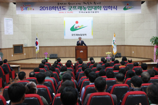 [굿타임] = 이강부 기자 = 전국 최고 수준의 시설농업을 자부하는 부여군은 무한경쟁 글로벌 농업환경에 능동적으로 대응하고 시대변화에 도전하는 유능한 전문인력 양성을 위한 2018년 굿뜨래농업대학 입학식을 15일 개최하고 본격적인 학사일정에 들어갔다.